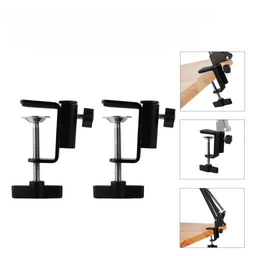 ✅ Regulowany zacisk do montażu na stole został zaprojektowany tak, aby bezpiecznie przymocować stojak mikrofonowy do blatu lub innej płaskiej powierzchni za pomocą regulowanej śruby pozycjonującej.