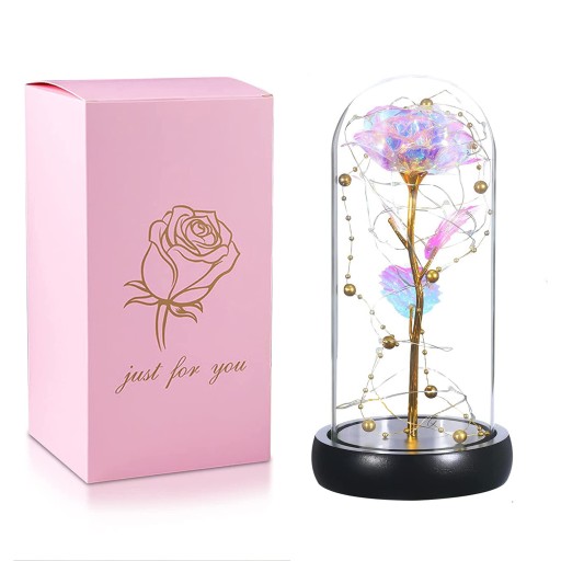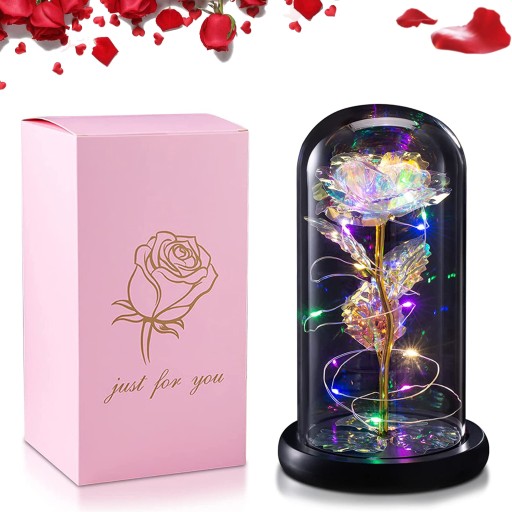 🌹 Wieczna róża: Ten kolorowy kwiat róży nigdy nie uschnie i umrze. Wieczny kwiat róży jest idealny i nieskazitelny. Jest tak pełna nieskończonej nadziei i piękna jak tęcza. I przyniesie Ci nieskończoną miłość i piękno.