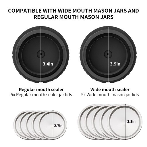 Suitable for 2 Types of Mason Jars: Our mason jar vacuum sealer is free from BPA, safe for consumption, and does not affect the taste of food. It is also dishwasher safe. It includes two sizes of mouth seals, suitable for both regular mouth mason jars (68mm) and wide mouth mason jars (84mm), enabling you to effortlessly seal jars of different sizes. Additionally, the mason jars are not included.