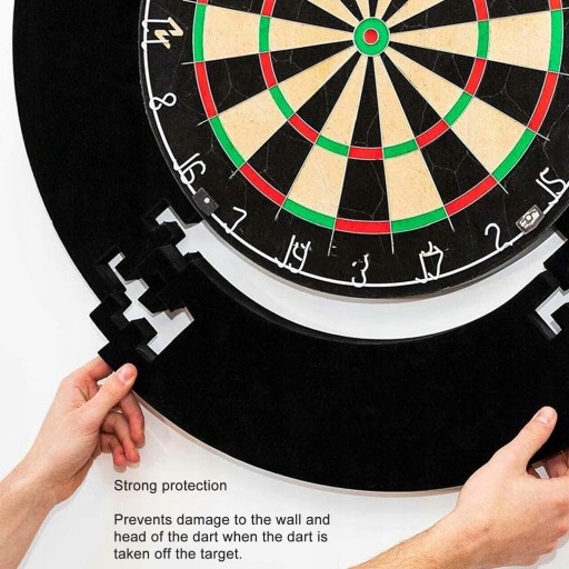 Cecha: 1. SILNA OCHRONA: Pierścień otaczający zapewnia doskonałą ochronę tarczy i rzutek, minimalizując uszkodzenia, gdy rzutki nie trafią w cel.