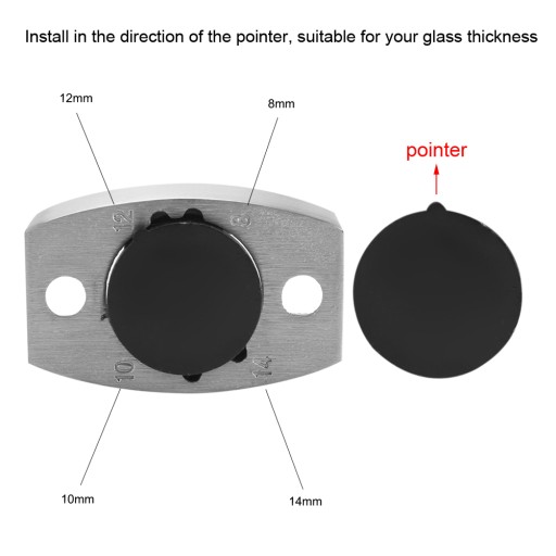 4. Możliwość regulacji w przypadku szkła o grubości 8–14 mm / 0,31–0,55 cala, co zapewnia dokładne i gładkie dopasowanie