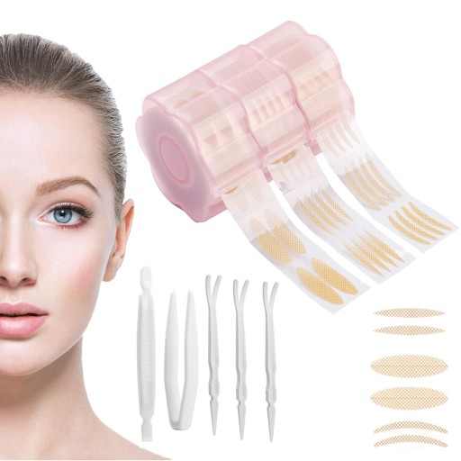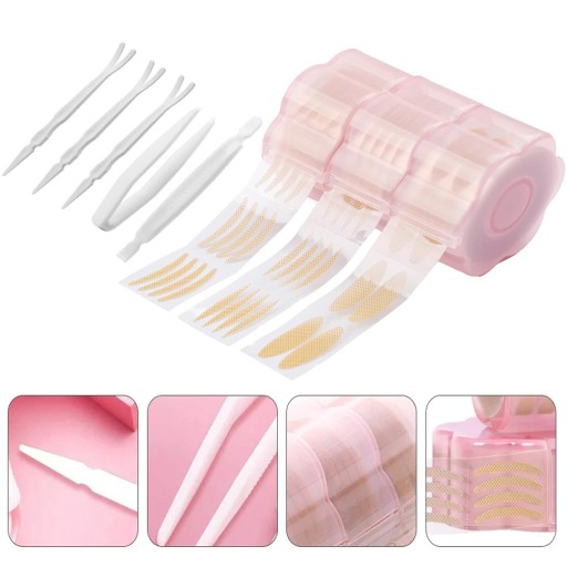 - 3 rolki podwójnej taśmy do powiek, 600 sztuk w rolce, łącznie 1800 sztuk, 1 para pęsety i 3 ząbki, ilość wystarczająca do codziennego użytku.