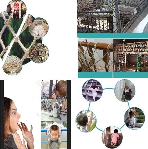 ★【Materiał siatki linowej】: Siatka zabezpieczająca do wspinaczki jest wykonana ręcznie z wysokiej jakości liny jutowej. Ma jasny kolor, jednolite naprężenie i nie jest łatwo spaść. Powierzchnia siatki ma dużą odporność na uderzenia. Jest tkana z wielu splotów, odporna na warunki atmosferyczne i zużycie, dzięki czemu siatka linowa jest bardziej trwała.