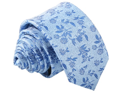 KRAWAT ŻAKARD BŁĘKITNY W KWIATKI [2397]