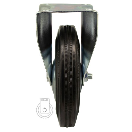 Koło posiada piastę metalową oraz oponę gumową, obudowa pokryta jest ocynkiem.