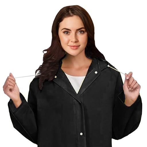 - Płaszcz jest łatwy do założenia i zdejmowania, co czyni go bardziej praktycznym niż tradycyjne kurtki przeciwdeszczowe