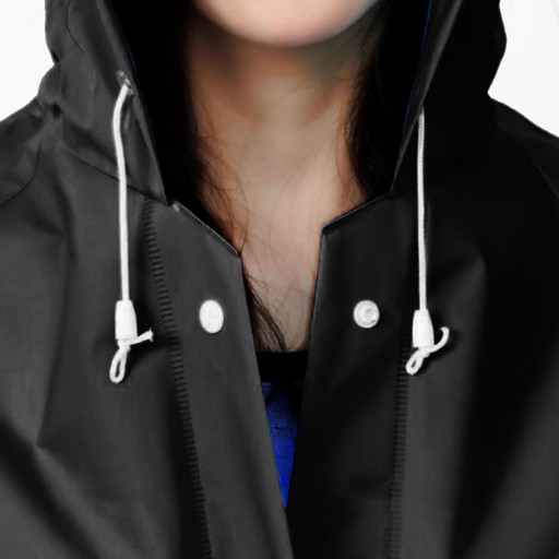 Doskonały płaszcz przeciwdeszczowy z kapturem. Idealna ochrona przed deszczem. Obszerny kaptur ze ściągaczami Cię przed deszczem.