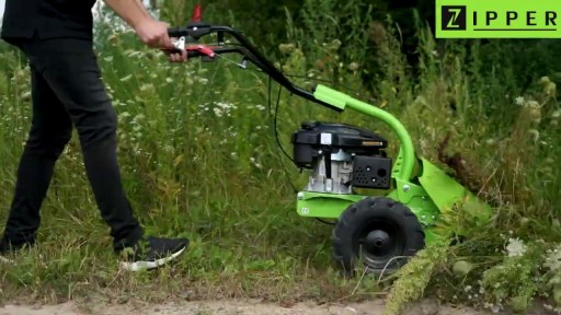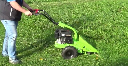 - Napęd o prędkości 2,5 km/h sprawia, że koszenie staje się mniej męczące, nawet w terenie pagórkowatym i zarośniętym