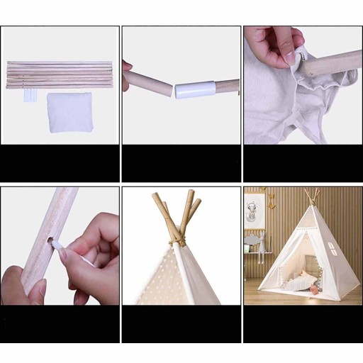 Każdy namiot tipi jest wykonany ręcznie, aby zapewnić trwałość i jest wyposażony w 4 solidne drewniane słupy oraz element do mocowania słupków, który wytrzyma Twój mały entuzjazm, dzięki czemu idealnie nadaje się do wszystkiego, od zabawy po drzemkę.