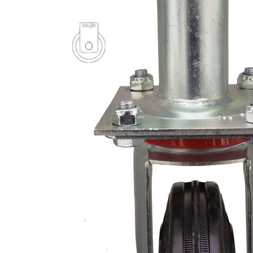 Koło posiada piastę metalową oraz oponę gumową, obudowa pokryta jest ocynkiem.