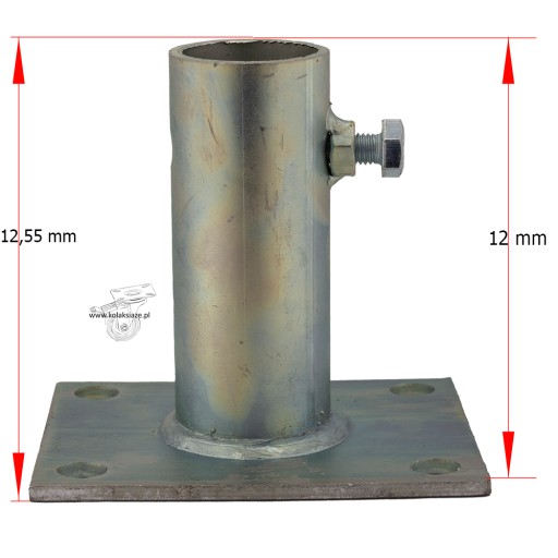 Wewnętrzna średnica trzpienia to 40 mm, jest dostosowana do najczęściej stosowanych w rusztowaniach warszawskich "stojaków" z rury 33,7 mm.