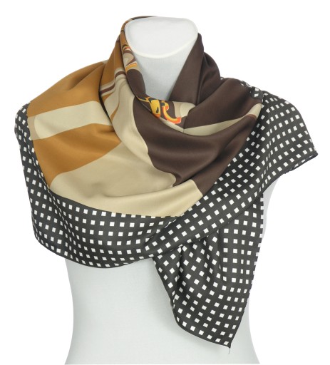 ОРИГИНАЛЬНЫЙ АТЛАСНЫЙ ШАРФ С ЦЕНТРОМ БЕЖЕВЫЙ/КОРИЧНЕВЫЙ 90/90 см