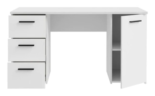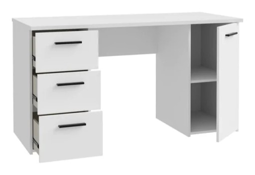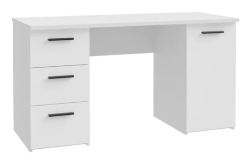 Dla osób pracujących zdalnie, właścicieli firm, uczniów i studentów – biurko NET307 zostało zaprojektowane z myślą o wszystkich. Wyróżnia się przestronnym blatem, który pomieści laptopa, komputer, słuchawki, notatnik, lampkę biurową i organizer na długopisy. Do przechowywania służy szafka z jednej strony oraz trzy pojemne szuflady z drugiej. Nie musisz się martwić, nadal pozostaje dużo miejsca pod blatem, abyś mógł wygodnie usiąść w swoim fotelu.