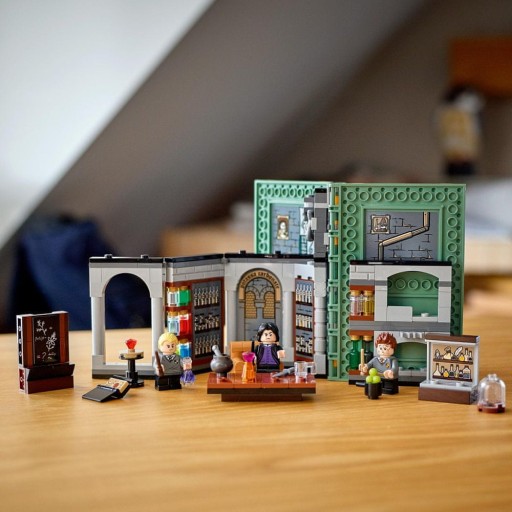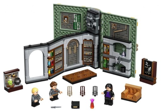 - LEGO Harry Potter Chwile z Hogwartu: zajęcia z eliksirów (76383) to książka z klocków, która kryje w sobie miejsce znane z filmów o Harrym Potterze — loch w Hogwarcie, gdzie odbywają się lekcje eliksirów.
