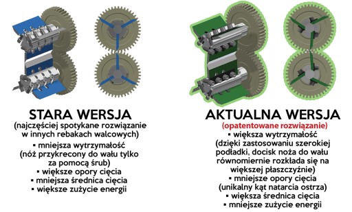 - SPRAWDZONY, PRECYZYJNIE WYKONANY ZESPÓŁ TNĄCY (kilkanaście lat doświadczenia w obróbce metali i produkcji rębaków)