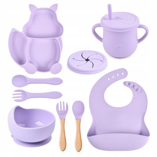 Силиконовая посуда для детей грудничков крабовый набор из 9 элементов фиолетового цвета