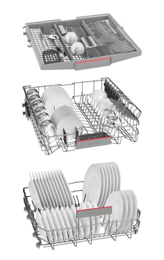 System regulacji położenia górnego kosza Rackmatic, służy dopasowaniu wnętrza do aktualnych potrzeb. System pozwala zmienić ustawienie kosza na różnych wysokościach, a wybraną pozycję można łatwo zmienić , nawet gdy kosz jest pełen. Dzięki temu możesz dostosować wnętrze do swoich potrzeb nawet dla bardzo wysokich talerzy w dolnym koszu, czy wysokich kieliszków czy kufli w górnym koszu.