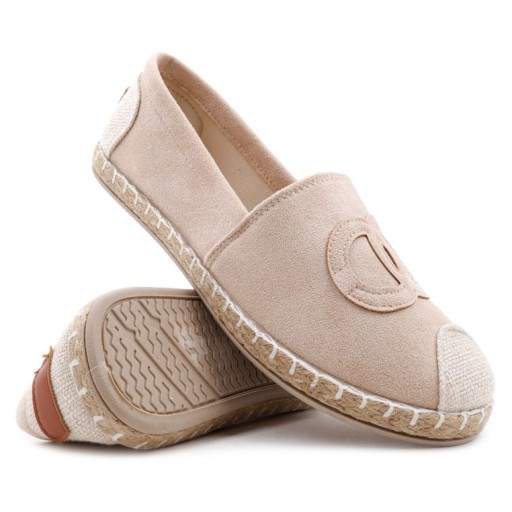 BEŻOWE ESPADRYLE DAMSKIE WSUWANE TENISÓWKI PÓŁBUTY PŁASKIE WKŁADKA EKOSKÓRA