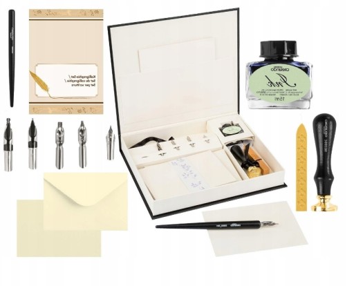 Zestaw do kaligrafii zawiera wszystkie elementy i narzędzia potrzebne do wykonania pięknego, oryginalnego i artystycznego pisma.