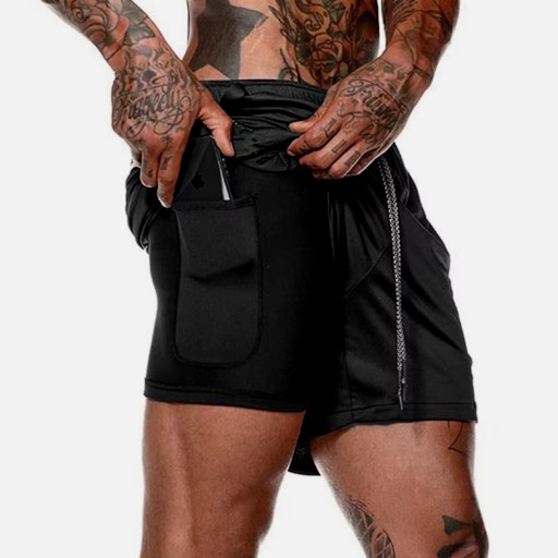 - Innowacyjna konstrukcja 2w1 – idealne dopasowanie i wsparcie. Te spodenki łączą w sobie zewnętrzną, luźniejszą część w postaci luźnych sportowych krótkich spodenek oraz przylegające krótkie getry pod spodem , które gwarantują pełną swobodę ruchu i optymalne wsparcie dla mięśni. Dzięki temu dwuwarstwowemu krojowi jakie mają te krótkie spodenki, możesz czuć się pewnie, nawet podczas najcięższych treningów, unikając bolesnych otarć i ucisków. Krótkie spodenki GYM WEAR PRO mimo zastosowaniu profesjonalnej, szybkoschnącej tkaniny technicznej, zachowuje modny styl i wygodę.
