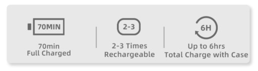- Zasilanie z Etui Ładującego: Łącznie 6 godzin oświetlenia dzięki 2-3 ładowaniom z kompaktowego etui, które ładuje się w pełni w 70 minut.