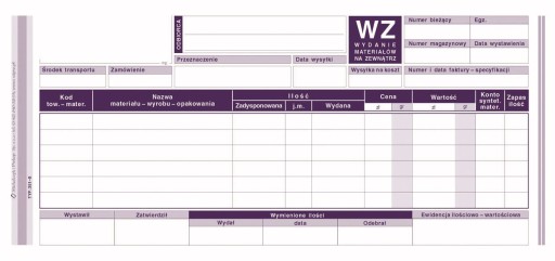 format: 1/3 A4 rodzaj papieru: samokopiujący zastosowanie: obrót towarowy i materiałowy oraz magazynowy oprawa: bloczek 80 kartek druk: jednostronny (wielokopia)