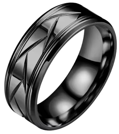 Czarny Solidny Pierścień Sygnet Skośne Paski Krawędzie Punk Rock STAL