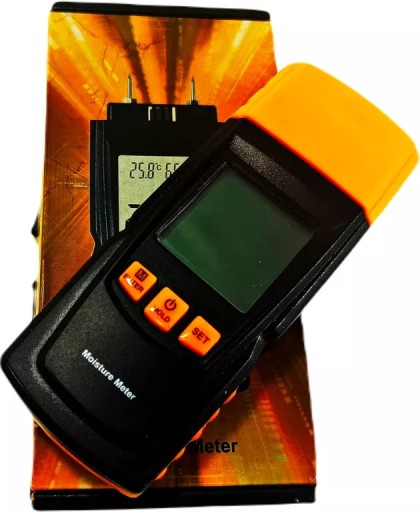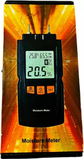 Miernik wilgotności do drewna, a także innych materiałów wykorzystujący sondy mierzące oporność do pomiaru zawartości wody. Urządzenie posiada 4 grupy do mierzenia wilgotności różnych gatunków drewna oraz 4 grupy do pomiaru wilgotności materiałów budowlanych.