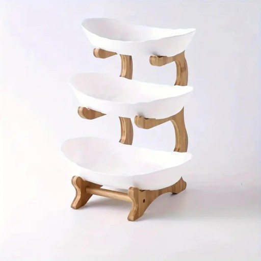 Misa na owoce, 3-poziomowa, z naturalnym bambusowym stojakiem, talerz do serwowania owoców, ciast, słodyczy