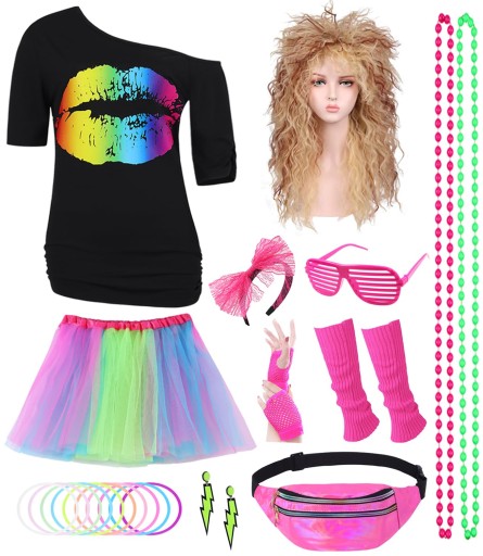 ЖЕНСКИЙ ТАНЦЕВАЛЬНЫЙ КОСТЮМ ДЛЯ ДИСКОЦВЕТНЫХ НЕОНОВ 80-Х АКСЕССУАРЫ