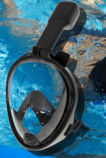 Powierzchnia maski, została skonstruowana w taki sposób aby zapewnić 180-stopniowe pole widzenia. Ponadto maska nie uciska twarzy, a jej solidny system mocujący oraz regulowane szerokie pasy sprawiają, że nie spadnie nawet podczas skoków do wody.