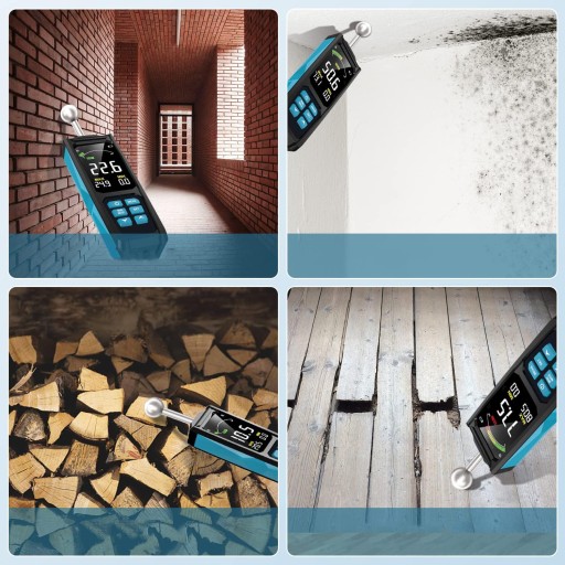 ☑️【Szeroki zakres zastosowań】: nadaje się do badania wilgotności drewna i materiałów budowlanych, takich jak panele ścienne, łupek, płytki, karton, tynk, beton i zaprawa, a także do naprawy wycieków wody, sprawdzania wilgotności ścian sypialni, płytek podłogowych lub przyczep kempingowych itp. Wilgotnościomierz pozwala szybko wykryć pleśń i zabezpieczyć substancję budowlaną domu lub mieszkania.