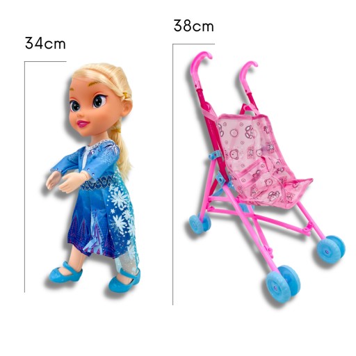 DUŻA LALKA ELSA DZIECKO WÓZEK DO PROWADZENIA I DODATKI