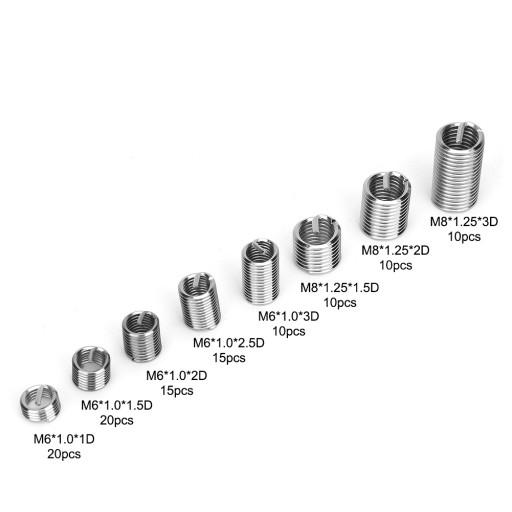 110 szt. M6-M8/1D-3D Drut zwinięty Wkładka gwintowana Śruby gwintowane ze stali nierdzewnej Zestaw tulei