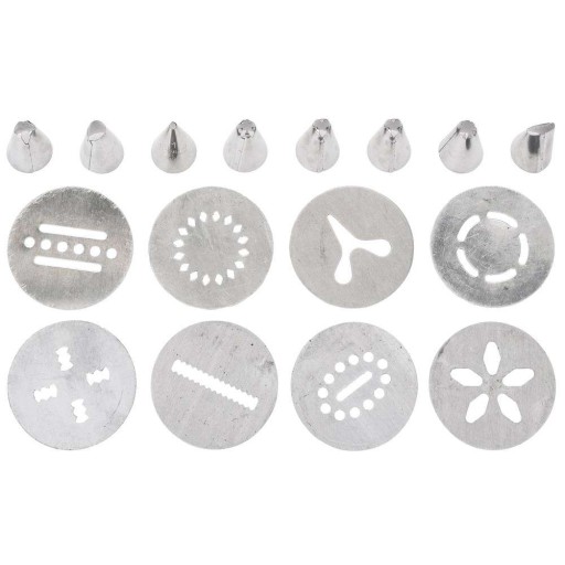 Maszynka do ciastek, stal nierdzewna, 14 końcówek to praktyczny sposób na szybkie i wygodne przygotowywanie oraz dekorowanie kruchych ciasteczek. Sprawdzi się doskonale w każdej kuchni podczas przygotowywania świątecznych wypieków, a także pozwoli ozdobić ciasta i desery przez cały rok. Dzięki nim przygotujesz pyszne ciastka, a następnie wygodnie ozdobisz kolorowym lukrem.
