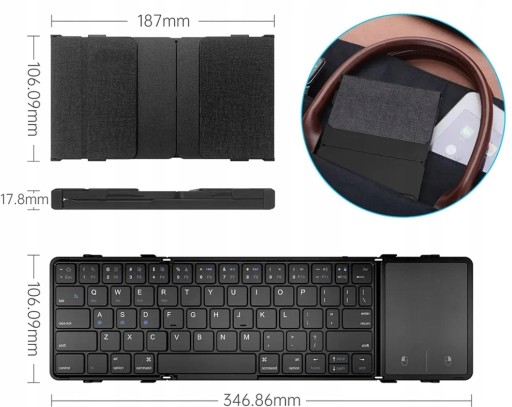 Rozmiar klawiatury: 346.86X106.09X8.8mm (otwarta) 187X106.09X17.8mm (składana)