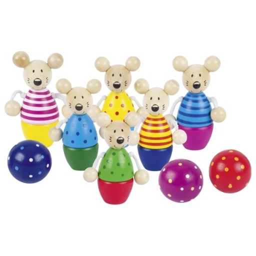 Podręczny zestaw kolorowych kręgli. Można w nie grać zarówno na stole jak i na podłodze.