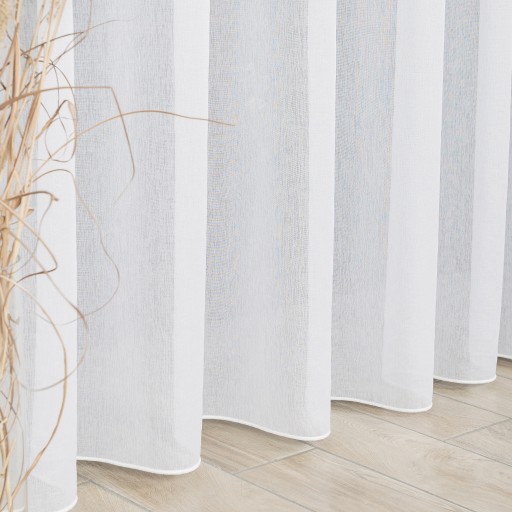 Dzięki wszytej ołowiance firana idealnie się układa, tworząc równomierne fałdy oraz zapewnia idealne dociążenie i estetycznie wykończenie dołu firany. Jej prosta, a zarazem elegancka forma sprawia, że doskonale komponuje się zarówno w nowoczesnych, jak i klasycznych aranżacjach wnętrz, podkreślając ich styl i dodając im uroku.