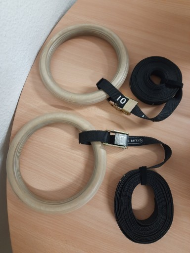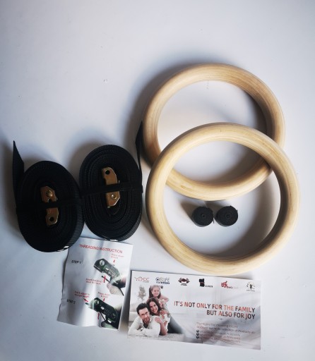 Drewniane Kółka Gimnastyczne Z Pasami CClife pełen komplet !