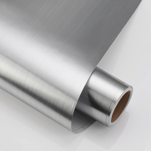 NAKLEJKA SAMOPRZYLEPNA FOLIA SZCZOTKOWANA SREBRNY DO LODÓWKI DRZWI MEBLI