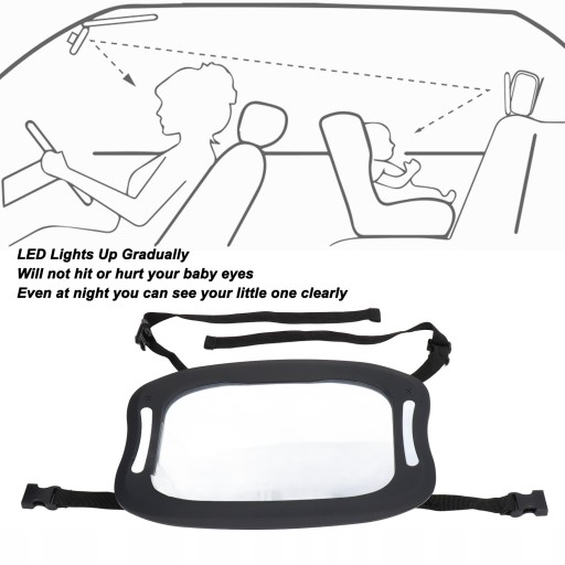 1. Światło LED: lusterko samochodowe dla dzieci ze światłem LED, stopniowo się zapala, nie uderza ani nie rani oczu dziecka, nawet w nocy możesz wyraźnie zobaczyć swoje małe dziecko.