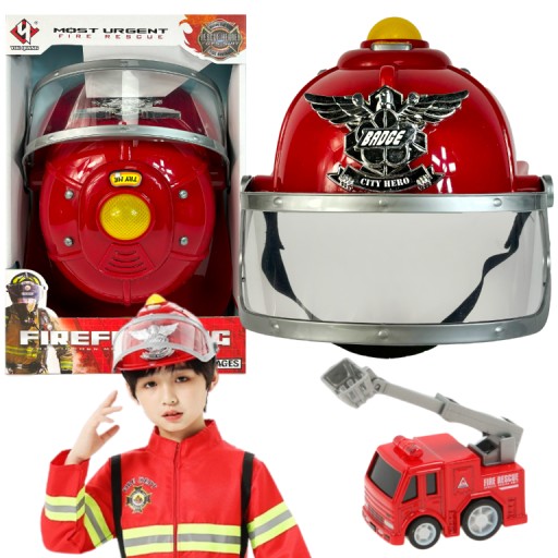 ПОЖАРНЫЙ ШЛЕМ СО ЗВУКАМИ, СВЕТ, ПОЖАРНЫЙ ШЛЕМ, ДЕТИ, СИГНАЛ + АВТОМОБИЛЬ