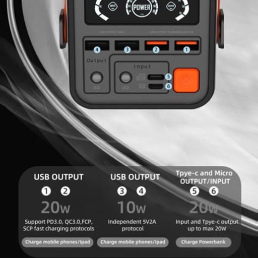 1. 1. 4 wyjścia i 3 wejścia: Ten power bank ma 4 wyjścia dla różnych urządzeń. Dwa porty USB 5 V/2,4 A i jeden port typu C oraz jeden port wyjściowy szybkiego ładowania USB umożliwiają jednoczesne ładowanie wielu urządzeń, np. kompatybilnych z iPadem, kompatybilnych z Switchem i telefonami komórkowymi. Dzięki Micro USB dla wejść IOS i Type?C dostępnych jest więcej opcji ładowania. 2. 2. Szeroko kompatybilna: nasza przenośna ładowarka ma 4 różne porty wyjściowe, które można elastycznie dopasowywać do różnych typów kabli ładujących, aby uzupełniać zasilanie wielu produktów jednocześnie. (Nie można używać obu portów wejściowych jednocześnie. ) 3.3. Technologia szybkiego ładowania: moc wyjściowa PD i QC o mocy 36 W, ekscytująca prędkość ładowania to doskonały wybór w sytuacjach awaryjnych. 4.4. Wiele okazji: Idealny na kemping, spotkania rodzinne, spotkania z przyjaciółmi, wędrówki, podróże, nieoczekiwaną awarię urządzenia. Power bank o pojemności 60000 mAh pomoże Ci łatwo zaspokoić Twoje potrzeby w zakresie zasilania. 5、