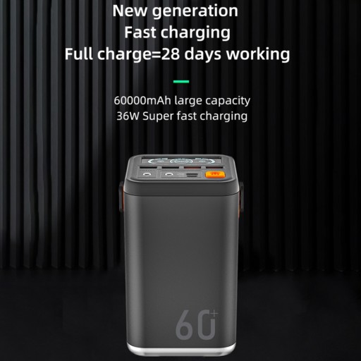 Ten power bank to mobilny power bank o dużej pojemności i dużej mocy, z baterią o dużej pojemności 60 000 mah, dwukierunkowym szybkim ładowaniem, wyjściem USB+Type-c, obsługuje moc 18 W, szybkie ładowanie telefonów komórkowych, obsługuje 2 lampki do użytku na zewnątrz więcej wygodny i obsługuje jednocześnie ładowanie 18 W