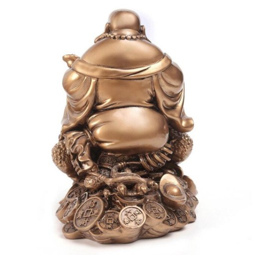 Roześmiany Budda siedzi na . Reprezentuje bogactwo i szczęście.