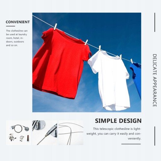 Ta teleskopowa linka do bielizny jest lekka, możesz ją łatwo i wygodnie przenosić.