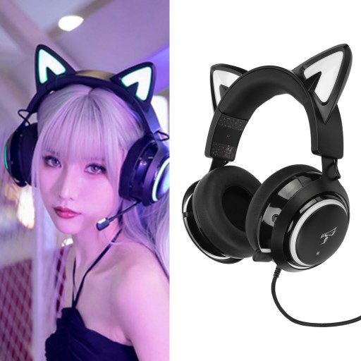1. 8 EFEKTY ŚWIETLNE: Zestaw słuchawkowy do gier ma 8 efektów świetlnych z przełączaniem kolorów za pomocą dotyku, które można zmienić w dowolnym momencie, aby dodać atmosferę do gry. 2, 3 TRYBY DŹWIĘKU: Zestaw słuchawkowy obsługuje tryby gier, muzyki i efektów dźwiękowych na żywo, może spełniać wiele zastosowań, jest wygodny i praktyczny. 3, Z MIKROFONEM: Wyposażony w mikrofon jednokierunkowy z mikrofonem o średnicy 6 mm, który można wysuwać, co ułatwia przechowywanie i wygodne użytkowanie. 4, WYGODNE NOSZENIE: Zestaw słuchawkowy jest noszony ergonomicznie, kąt muszli nausznej można precyzyjnie dostroić, a noszenie go jest nadal wygodne przez długi czas. 5, dobra dekoracja: zestaw słuchawkowy ma ozdobę uszu kota, wykwintną i uroczą, z wymiennymi magnetycznymi nakładkami na przyssawkę DIY, mały i praktyczny.
