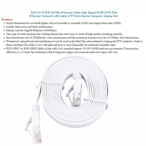 1. 1. Małe tłumienie, niski przesłuch, wyższy stosunek przesłuchu do przesłuchu (ACR) i współczynnik powrotu sygnału (SNR), mniejszy błąd opóźnienia i lepsza wydajność. 2. 2. Stosowany głównie w Gigabit Ethernet (1000Mbps). 3. 3. Ten typ kabla zwiększa gęstość uzwojenia, warstwa zewnętrzna wykonana jest z wysokiej jakości materiału izolacyjnego, szybkość transmisji 250 MHz dla transmisji głosu i maksymalna prędkość transmisji danych 10Mbps. 4. 4. Wodoodporny, odporny na rozciąganie i zakłócenia, może być używany w terenie. Materiał zewnętrzny to wysokiej jakości materiał PVC, który jest trudnopalny. Kabel jest bardzo miękki, lekki i łatwy do przenoszenia. Specjalnie dla użytkowników notebooków . 5, 5. RJ45 (8P8C) do RJ45 (8P8C), w pełni zgodny ze standardem Cat.6, obsługuje środowisko sieciowe 10/100/1000M. Wydajność transmisji jest 2,5 razy większa niż w przypadku tradycyjnego kabla. Wykorzystując rdzeń z czystej miedzi, wielordzeniowy, super miękki drut .