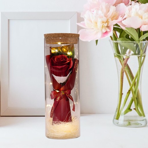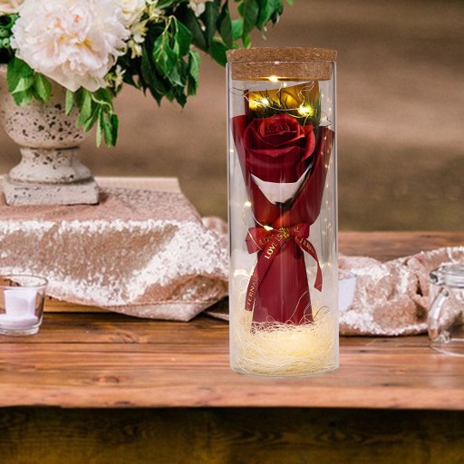 [Trwały materiał]: Prezent składa się ze szklanej butelki i kwiatu mydła, o wysokiej przezroczystości, a wnętrze jest wyraźnie widoczne. Ręcznie robione i mogą być przechowywane przez długi czas