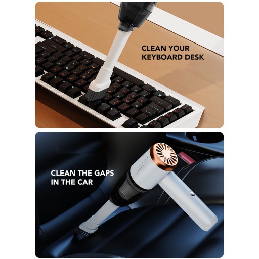 Cecha: 1. WIELOFUNKCYJNE ZASTOSOWANIE: Ten ręczny odkurzacz nadaje się do czyszczenia domu i samochodu, który z łatwością radzi sobie z potrzebami czyszczenia w różnych miejscach i zapewnia wygodne rozwiązania czyszczące.